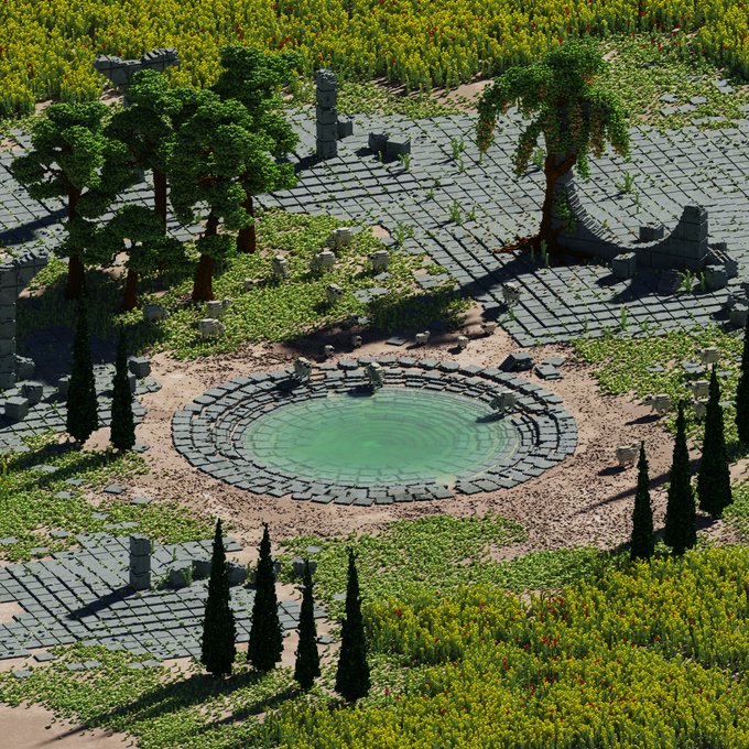 Watering hole Study for a larger project #3dart #magicavoxel #magicavoxelart #voxel #voxelart #voxels #isometricart #isometric #concrete #ruins #decay #naturalism #sheeps #wateringhole