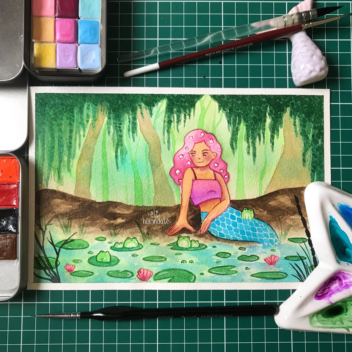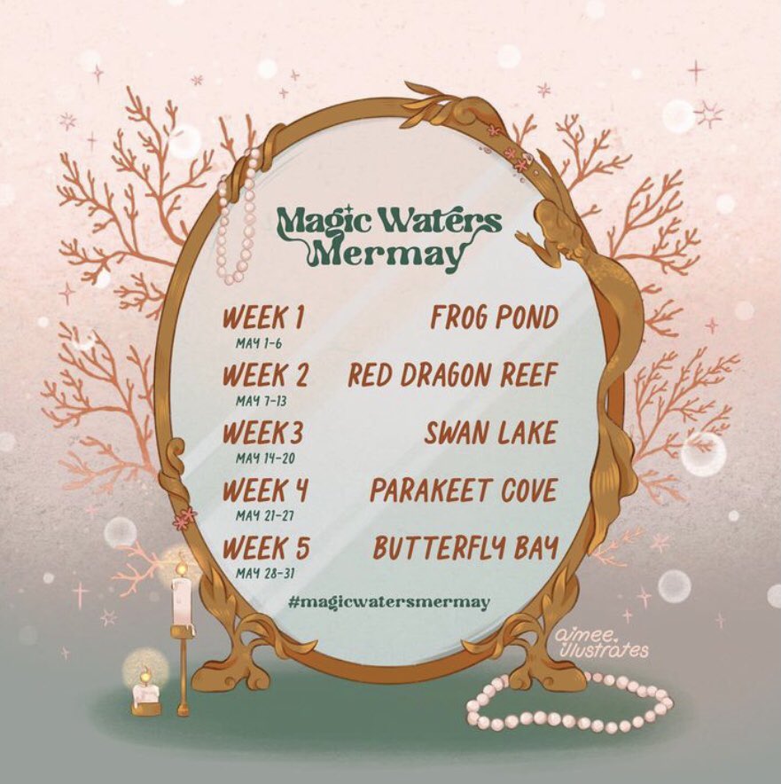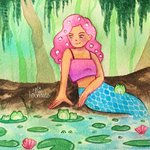 [#magicwatersmermay] Week 2: Red Dragon Reef 🌺🐉 A knightly lionfish mermaid meets a lovable red sea dragon! #mermay #mermay2023 #mermaid #seadragon #traditionalart #artistsontwitter #illustration #mixedmedia