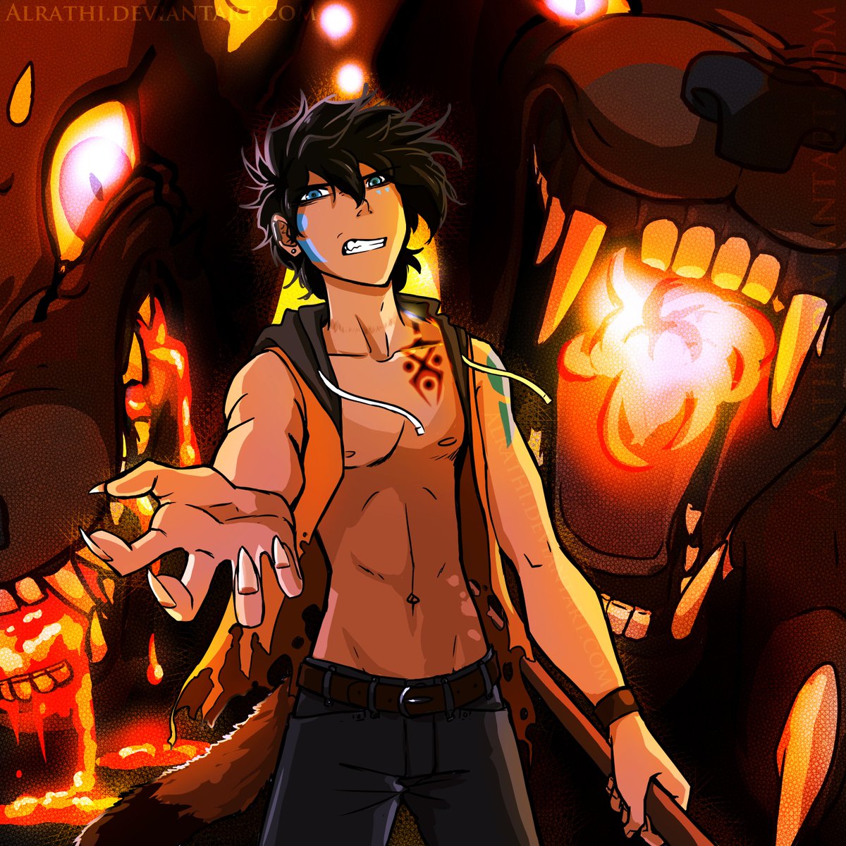 ALRIGHT TWITTER PEEPS, now we're moving up to the fancier stuff I neglected to post LMFAO This picture took me SO damn long to finish, omg. More DB characters again! This one is Rey, my second oldest, grumpy son ouo #oc #Rey #hazor #dragonsbreath #cerberus #magma #digitalart