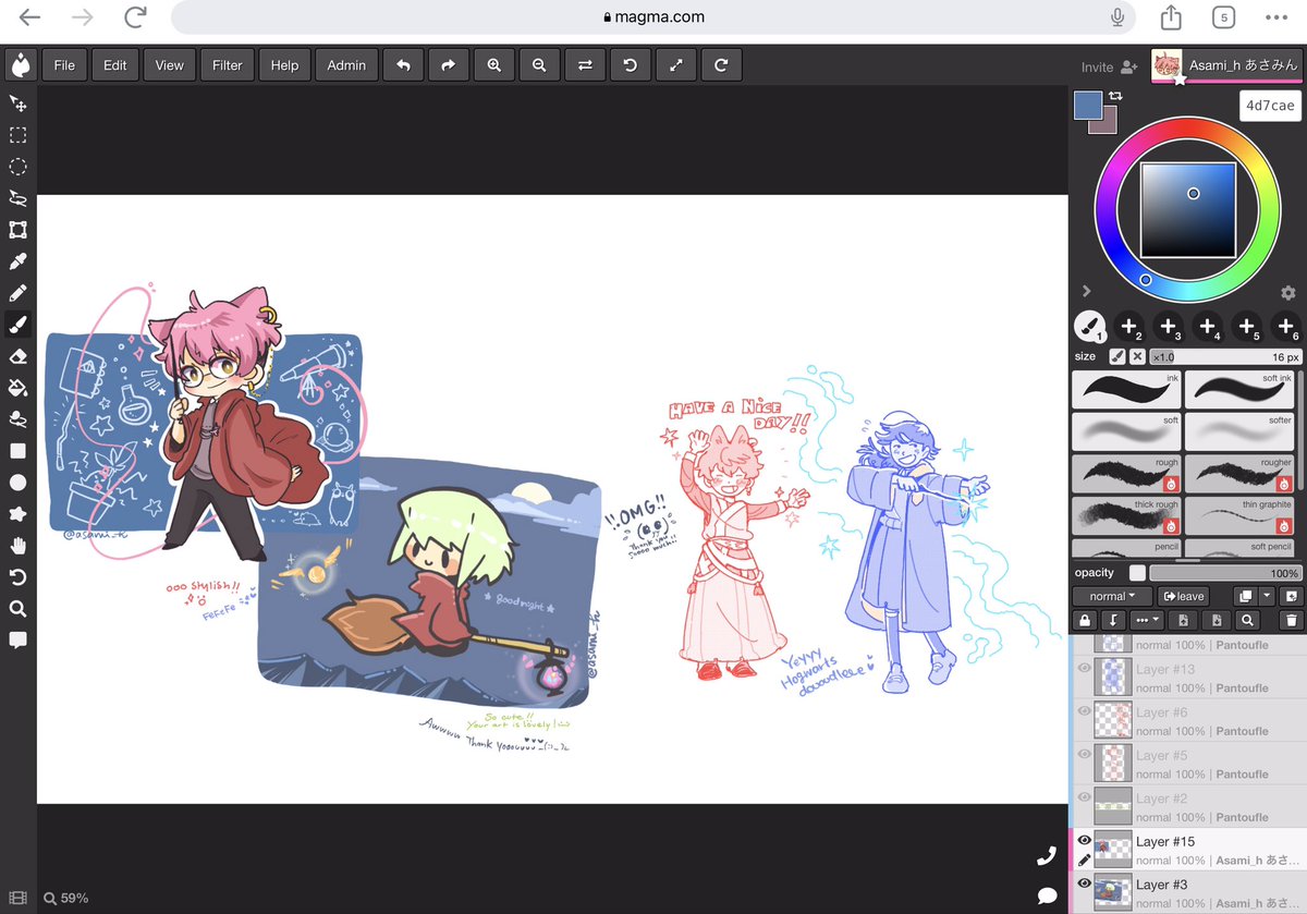 遅くまで付き合ってくれたプリさん感謝ー(T ^ T)✨ @purineko1 てか、今日、たまたまなのかめっちゃメンテばっかり入って_(꒪ཀ꒪」∠)_ #Magma 使えなかった💦 次回はスムーズに動くといいなぁ💦 #絵描きさんとつながりたい #그림러_트친소 #絵柄が好みっていう人にフォローされたい #絵チャ twitter.com/sami_hongo/sta…