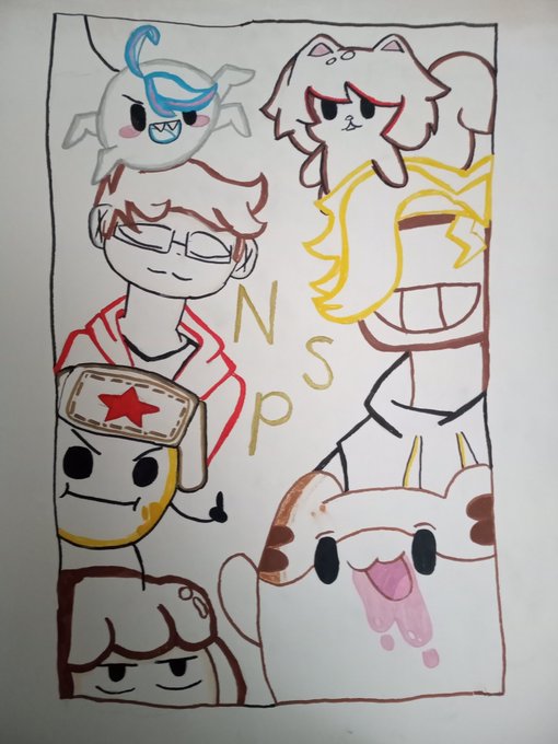 Aquí un dibujito de todos los miembros del #NuggetSMP No me termina de convencer, pero po ahora lo dejaré así. #MagmaBoiFanart #FalloArt #RakkunArt #starvtuberart #CapitanGatoFanArt #SilencioShhFanArt #Emikukisart #JustNovaFanart