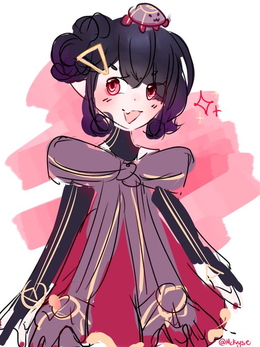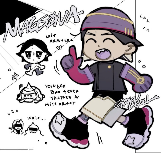 I couldn't sleep so I doodled a newer version of my Magsona 💜🌸( - ω - ) They slip drawings under the doorframe of the Laboratory and run away lol #MagniOpus #Magsona