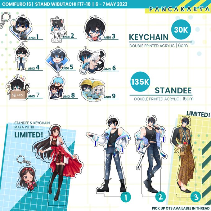 Berikut katalog Keychain dan Standee akrilik dari para artist yang keren-keren 💫💫💫 #comifuro16 #comifuro #cf16 #comifuro16catalogue #maha5 #vtuber #mayaputri_fanart #aliaadelia_art #andiadinata_art #lumicelestia_art #RenaMAHA5art #Zeni_Rupa #Niaredalion_Art #VangardoArt