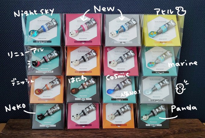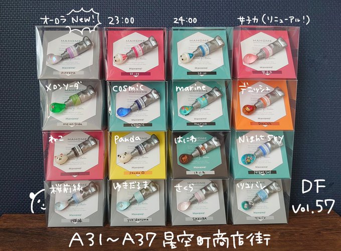 【 #デザフェス57お品書き 1 】 絵の具ブローチ(Cosmic/Panda/女子力/メロンソーダ/marine/デニッシュ/はにわ/Cosmic/ゆきだるま/Neko/Night sky/23:00/24:00/女子力/さくら/桜前線/🆕オーロラ) #mahomemo 両日 A31~37 星空町商店街🐼