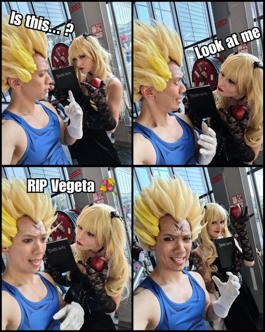 VEGETA powerless against the Death Note 😵💫 👱🏻♀️ With the talented cosplayer photographer @iamlaubm ❤️ @laucospic 📸 ------- #vegeta #majinvegeta #vegetaactor #tanwin #realtanwin #vegetafun #deathnote #deathnotecosplay #misaamane #misaamanecosplay #japanexpo2022 #ベジータ