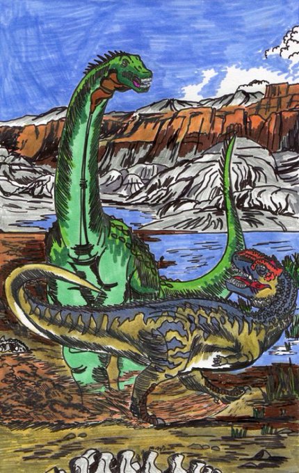 #Rapetosaurus holds the distinction of being one of most complete titanosaurs yet discovered. Known from several specimens including a nearly complete juvenile, this dinosaur lived ~70mya in #Madagascar alongside the more famous #Majungasaurus. #Paleoart by @IsaiahCTorre