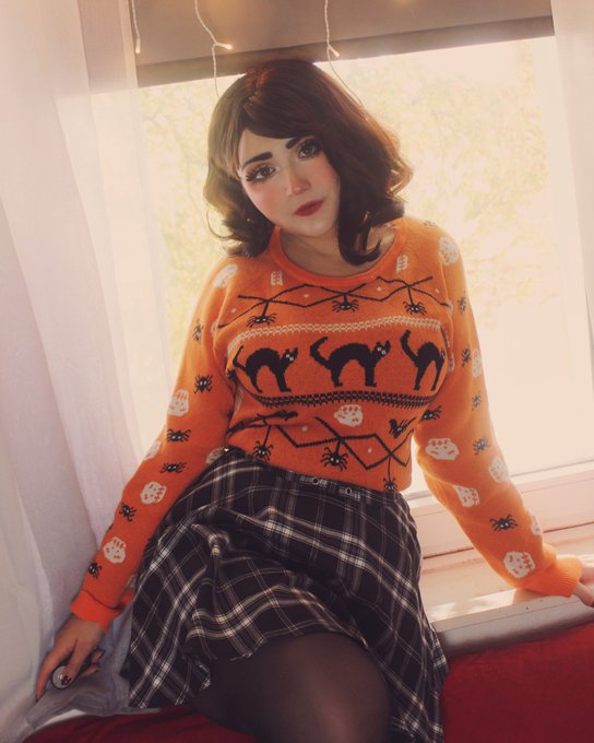 Last Picture with this lovely Halloween Sweater :c See ya next year qwq CHRISTMAS SWEATER SOON XD 🎄🎅🏼 #fall #fallvibes #autmn #autumnvibes #aesthetic #fallaesthetic #cute #halloween #spooktober #spoopy #makeup #makeupartist #cosplayer #cosplaygirl