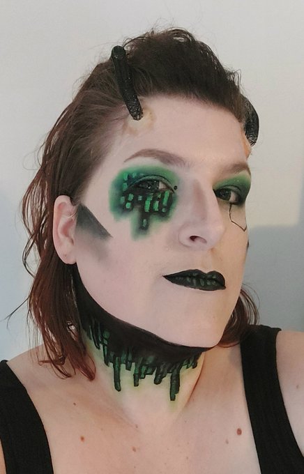 The end result of yesterday's make-up stream! It was a test for the Matrix inspired outfit I'm working on :3 There are a couple of things I want to change, but overall I had a lot of fun putting this idea on my face! Also yes, derpie was necessary xD #cosplayer #makeupartist