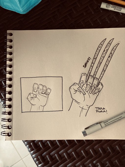 dias 29-30: desenhe mãos com unhas curtas, faça alongamento e design x super-herói. #wolverine #malfeitober2021 #inktober2021