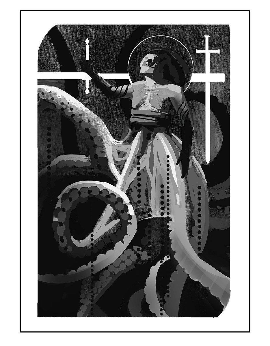 я забула запостити тут мермей 🥲 карта таро Блазень тема дня була сліпий #maloviy_horrortarot #mermay #ukrart