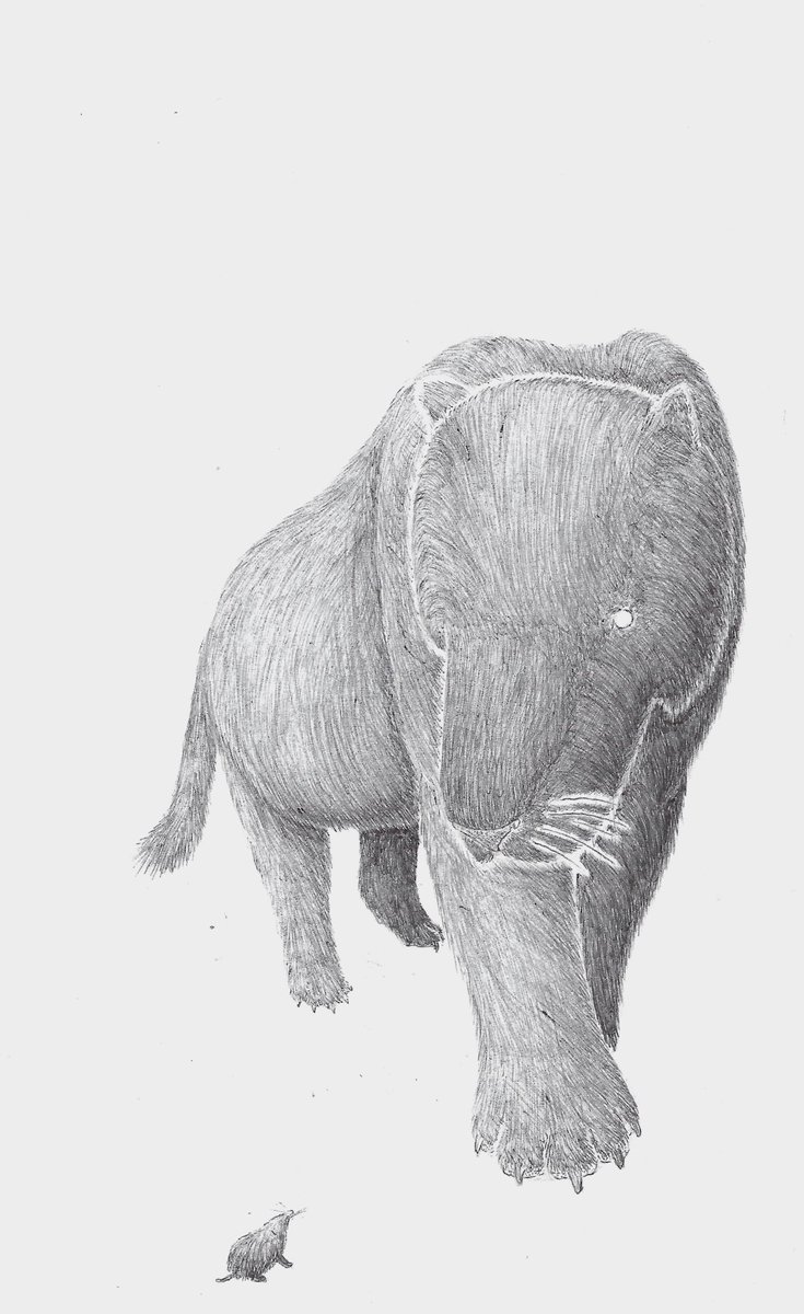 "Apex", One of the most vicious predators of the cenozoic stares to eyes of a young hunter, lucky for her, this Megistotherium osteothlastes is too large of a prey for the fearsome shrew #paleoart #sciart #megistotherium #hyenodont #mammal #marchofthemammals2022 #paleostream