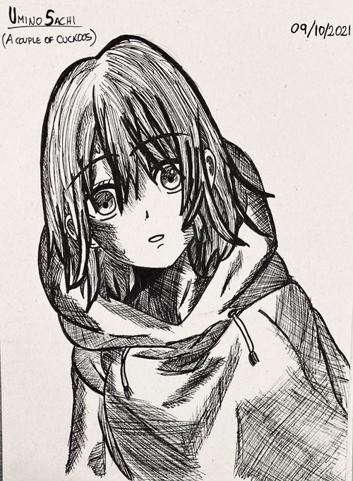 09. INKTOBER / MANGATOBER Day 9 drawing: Umino Sachi, from A Couple of Cuckoos! #inktober #inktober2021 / #mangatober #mangatober2021 @NormaEdManga