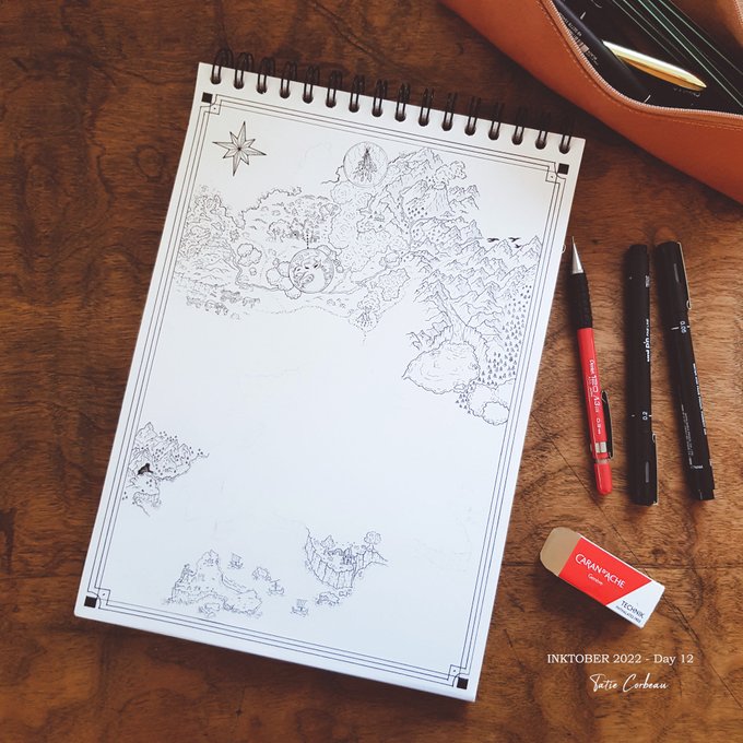 #inktober2022 Day 12 : Forget "Au cœur du jardin de la vieille cathédrale en ruine se trouve les restes d'un cimetière oublié. Plus personne ne connait les noms des défunts qui reposent ici, mais on raconte que la nuit, ont peut encore entendre leurs murmures." #map #mapmaking
