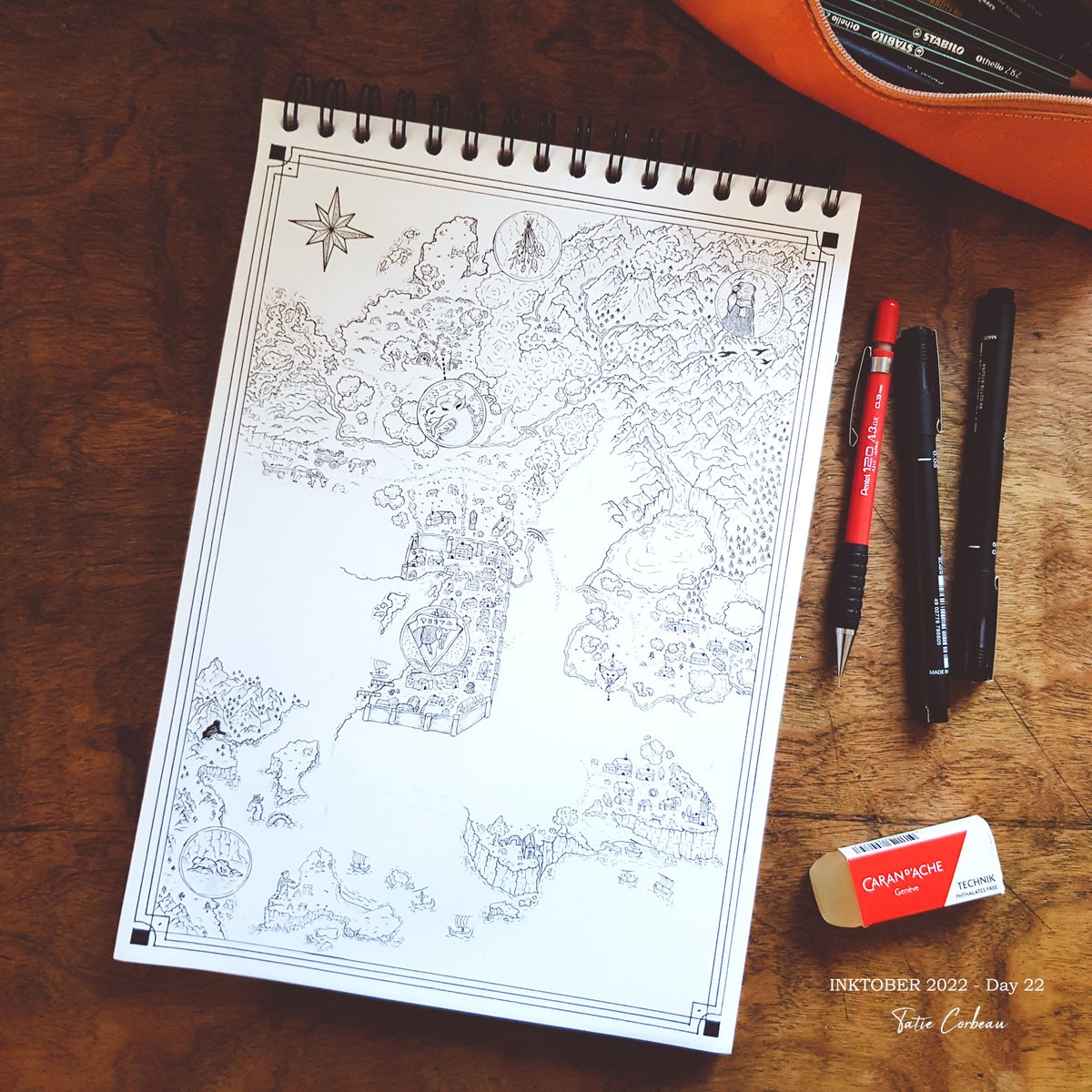 #inktober2022 Day 11 : Eagle "Les montagnes d'Éderne sont les plus sauvages de la région. Leur traversée périlleuse se fait sous le regard des aigles, seul animal visible depuis la plaine, tournoyant au dessus des sommets." #inktober2000day11 #map #mapmaking