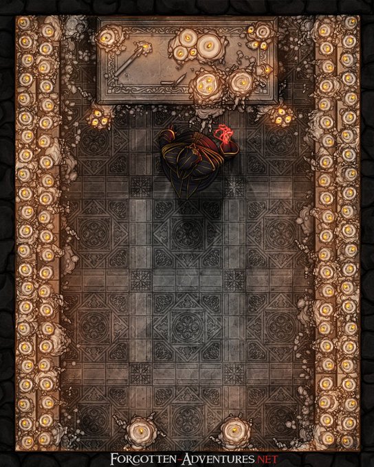 New FA Battlemaps release: Forest Tower Ruin [25x22]! A winding road leads you through the thicket of the forest until your gaze rests on the ruins of an ancient tower surrounded on all sides by imposing trees... Links in comments :) #mapmaking #dnd #dndart