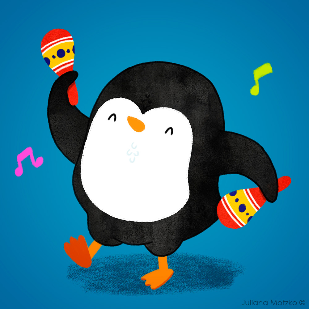 M is for Maraca! Played by Paul for #musicalinstruments round of #Animalalphabets project. @AnimalAlphabets #ThePenguinsFamily #penguin #Maraca #Maracas #tropical #Music #characterdesign #childrenspublishing #kidlitart #kidlitartist #illustration #illustrator #JulianaMotzko