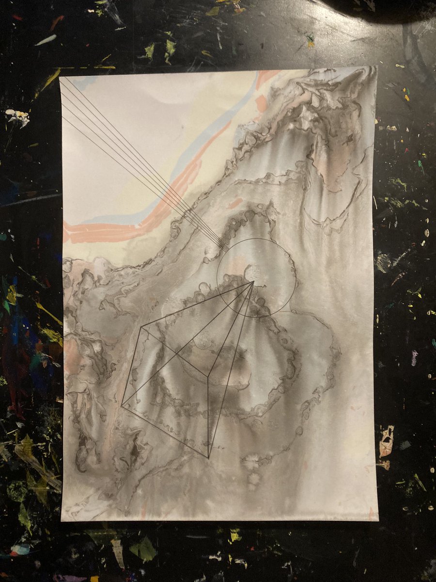 眠れない 夜の あそび。 (暇をもてあました神々の遊び。風に) #モンスターエンジン #art #artist #ArtistOnTwitter #newartwork #artwork #color #abstractart #marbling #絵画 #作品 #ケント紙 #マーブリング #墨流し #抽象的 #色 #新作