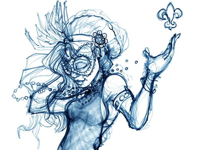 I’ve been working on a #Mardigras #illustration so I thought I’d share what I start with. This is a loose #digitalsketch that has the idea and arrangement of the composition #NewOrleans #loosesketch