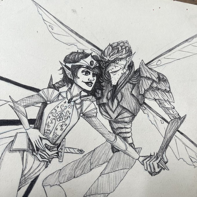 I thought I’d take a break from inktober and fulfill a request to draw more of these two 😊#drawing #sketching #digitalart #procreate #characterart #strangemagic #marianne #thebogking #butterflybog