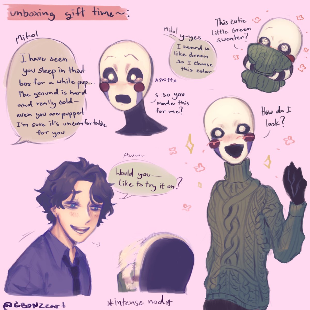 Continue from yesterday~ There you go let's see what's the gift 🎁✨ #puppet #FNAF #fnaffanart #fnaf2 #Marionette #Afton #aftonchild #CharlotteEmily #Michaelafton #Afton #fivenightsatfreddys