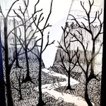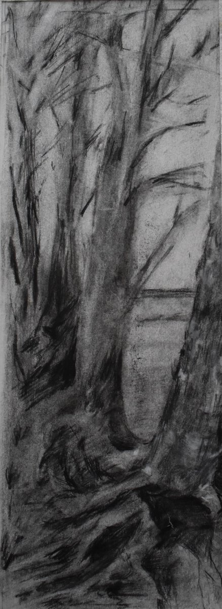 Couple more tree drawings. The left one is long & thin, from a place on a local common. The right one is just messing with pen, ink, wax, wash - an arty doodle. They both need a click. #trees #art #drawing #markmaking #charcoal #penandink #inktober2021 #mixedmedia #arttherapy