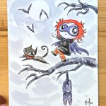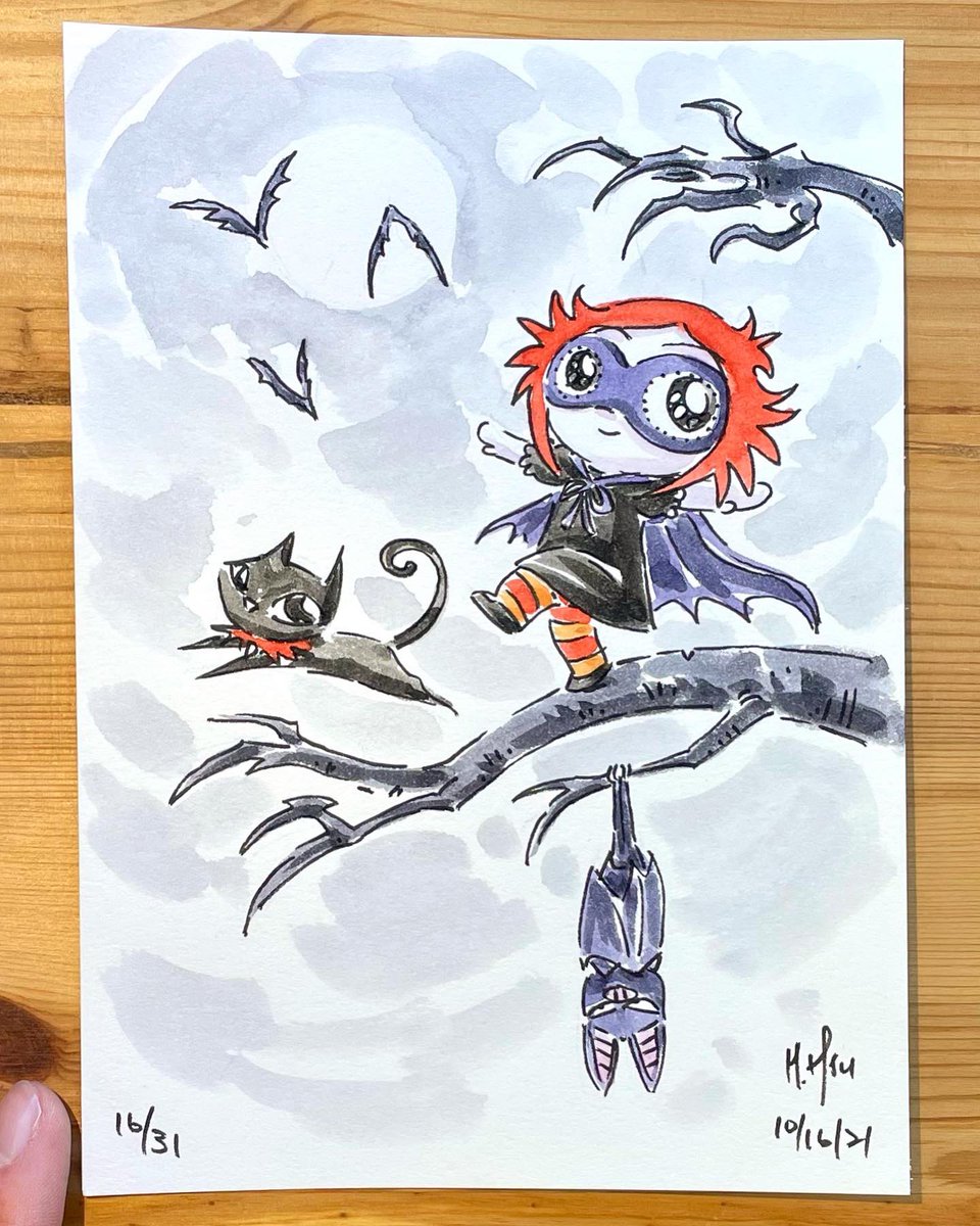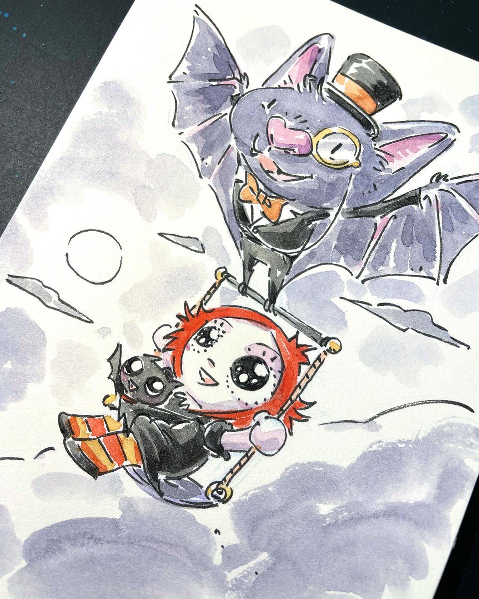 #RubyGloomInktober # 10/31: ‘Bats’ “Not all bats are meant to fly… but that doesn’t stop us from swinging into the night sky!”- #RubyGloom 🦇 👁 Original artwork by Martin Hsu for sale daily on martinhsu.bigcartel.com/category/hallo… #inktober2021 #martinhsuhalloween #mabsdrawlloweenclub2021