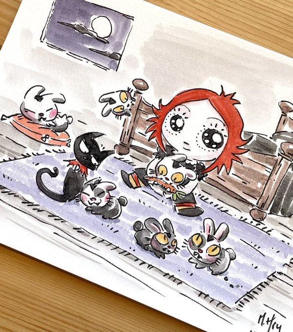 #RubyGloomInktober # 17/31: ‘Vampire’ 🐰🧛🏻♂️ “Vampire bunnies are not only soft and cuddly… they leave the cutest bite marks!” - #RubyGloom 👁 Original artwork by Martin Hsu for sale daily on martinhsu.bigcartel.com/category/hallo… #inktober2021 #martinhsuhalloween #mabsdrawlloweenclub2021