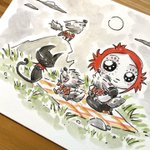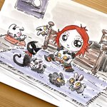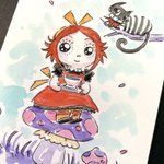 #RubyGloomInktober # 14/31: ‘Yokai’ “I love seeing my Yokai friend, #Amabie …she makes me feel extra safe on stormy nights!”- #RubyGloom 😷❤️ 👁 Original artwork by Martin Hsu for sale daily on martinhsu.bigcartel.com/category/hallo… #inktober2021 #martinhsuhalloween #mabsdrawlloweenclub2021