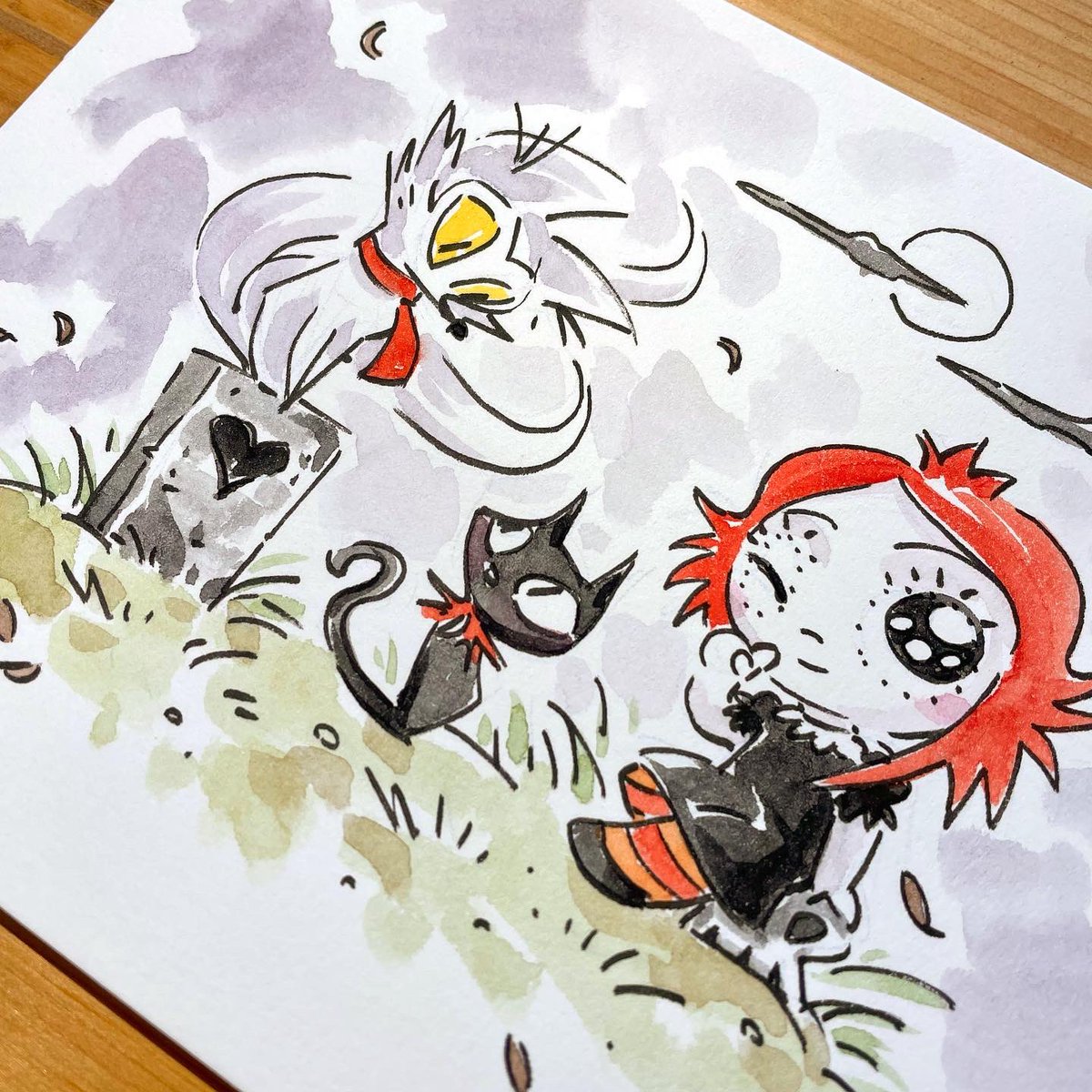 🥰 #RubyGloomInktober # 27/31: ‘Spark’ “A spark is a sacred language shared between a girl and her cat.” - #RubyGloom 👻 👁 Original artwork & prints by Martin Hsu for sale daily on martinhsu.bigcartel.com/products #inktober2021 #martinhsuhalloween #mabsdrawlloweenclub2021