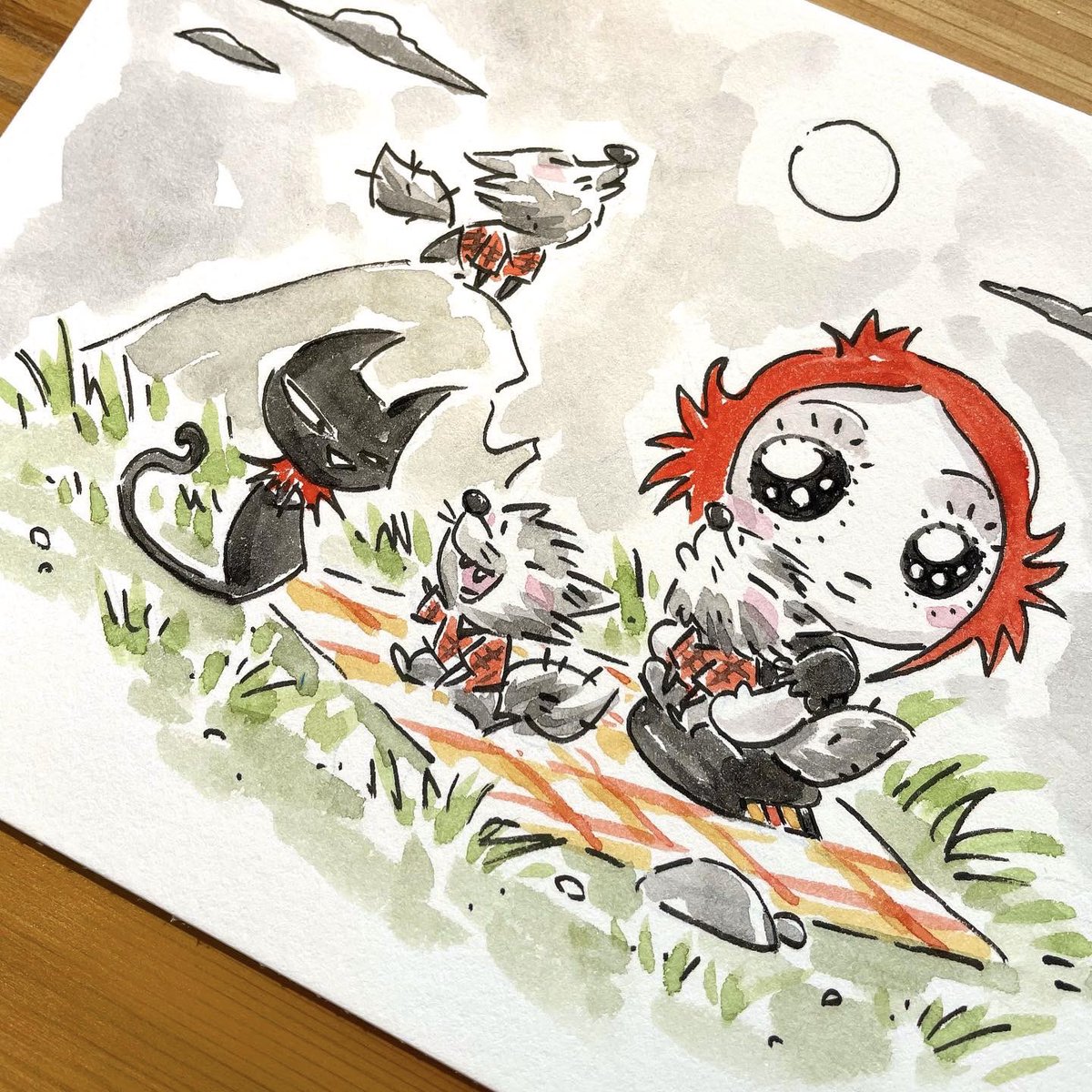 #RubyGloomInktober # 7/31: ‘Werewolf’ “Werewolf pups are adorable… just don’t expect to have a quiet evening.” - #RubyGloom ❤️ 👁 Original artwork by Martin Hsu for sale daily on martinhsu.bigcartel.com/category/hallo… #inktober #inktober2021 #martinhsuhalloween #mabsdrawlloweenclub2021