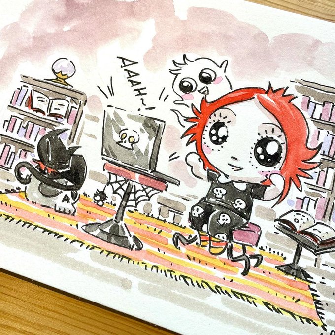 #RubyGloomInktober # 8/31: ‘Haunting’ “Haunting remotely is the best. I get to wear my favorite pajamas all day!” - #RubyGloom ❤️ 👁 Original artwork by Martin Hsu for sale daily on martinhsu.bigcartel.com/category/hallo… #inktober #inktober2021 #martinhsuhalloween