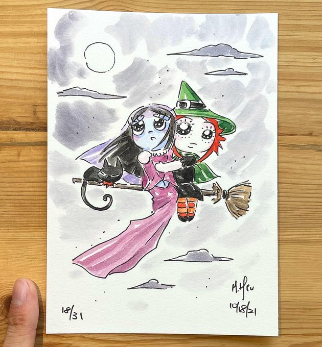 #RubyGloomInktober # 18/31: ‘Spell’ 🧙🏻♀️ “Feeling blue? The best spell I know comes with a BIG hug!” - #RubyGloom 👁 Original artwork & prints by Martin Hsu for sale daily on martinhsu.bigcartel.com/category/hallo… #inktober2021 #martinhsuhalloween #mabsdrawlloweenclub2021