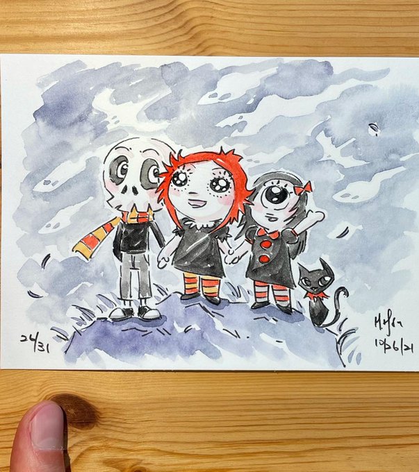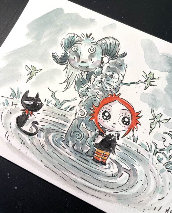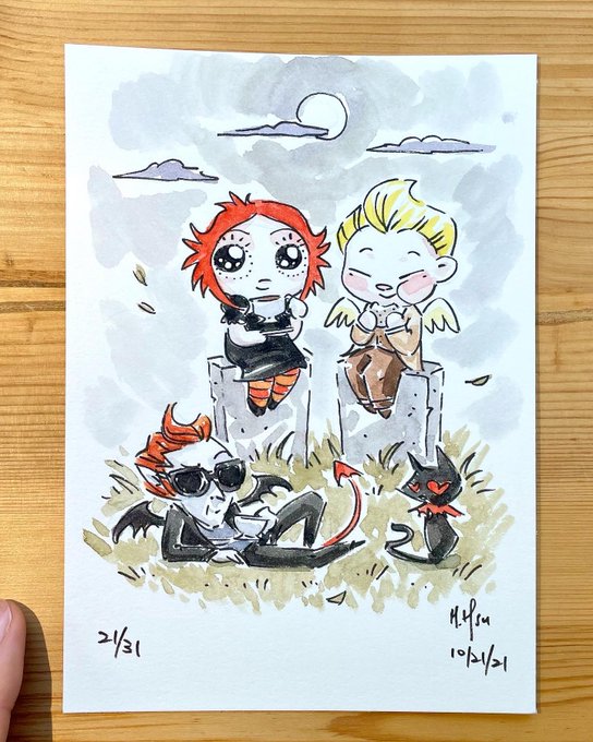 Good Omens? #RubyGloomInktober # 21/31: ‘Omen’ 😇😈 “Omens good and bad are my favorite guests for tea and biscuit!” - #RubyGloom 👁 Original artwork & prints by Martin Hsu for sale daily on martinhsu.bigcartel.com/category/hallo… #inktober2021 #martinhsuhalloween #mabsdrawlloweenclub2021