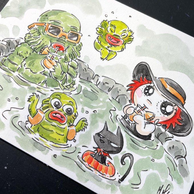 #RubyGloomInktober # 13/31: ‘Lagoon’ 🐸 “Creature from the Black Lagoon throws the best pool parties!”- #RubyGloom 🍹 👁 Original artwork by Martin Hsu for sale daily on martinhsu.bigcartel.com/category/hallo… #inktober2021 #martinhsuhalloween #mabsdrawlloweenclub2021 #inktober