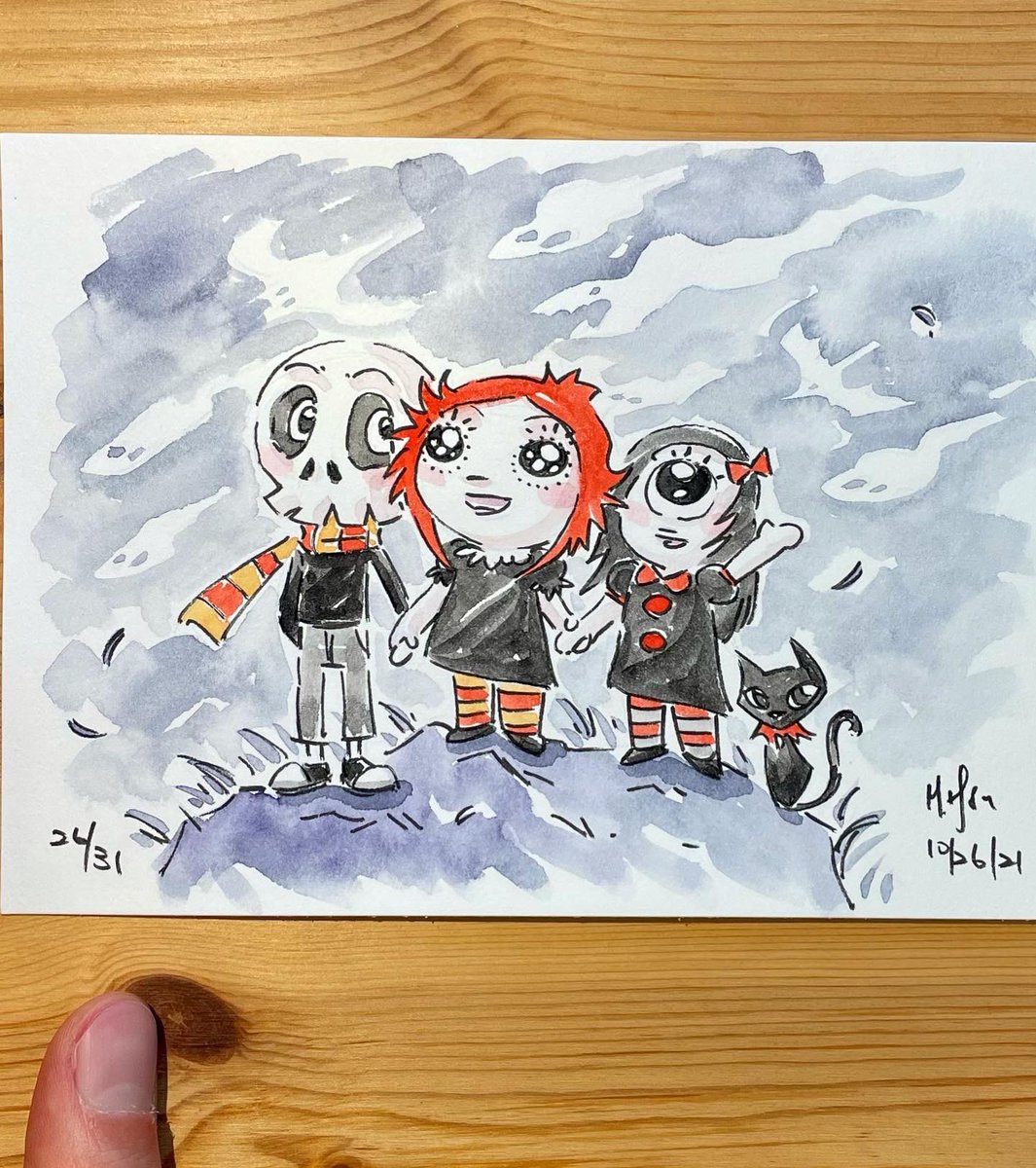 🐈⬛ #RubyGloomInktober # 30/31: ‘Doom’ “Impending Doom is all I want every morning!” - #RubyGloom 🎁 Art Book pre-order, original & prints by Martin Hsu on sale now martinhsu.bigcartel.com/category/hallo… #inktober2021 #martinhsuhalloween