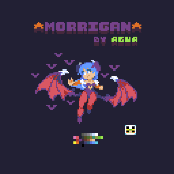 Made more of Morrigan for today's thingy~ 💪🐸 He he he more of her~ U: 🍑 Check the process on my Kofi~!📷 #pixelart #pixelartist #CAPCOM #Pixel_Dailies #MarvelVSCAPCOM
