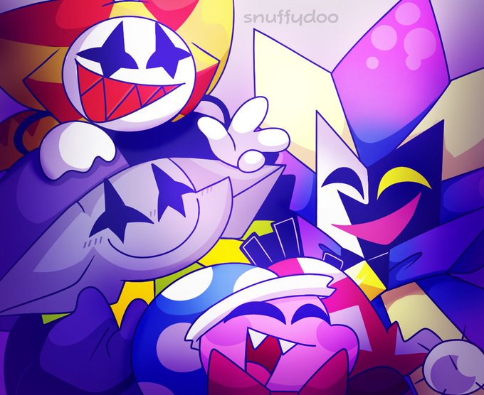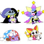 Tumblr user rockgirls-world2017 drew teddy designs for these four- and to show my kindness I drew them as well So here are my doodles #Dimentio #Jevil #Marx #superpapermario #SuperMario #Mario #papermario #DELTARUNE #kirby #kirbymarx #FANART #art #jestertrio #joka #klonoa