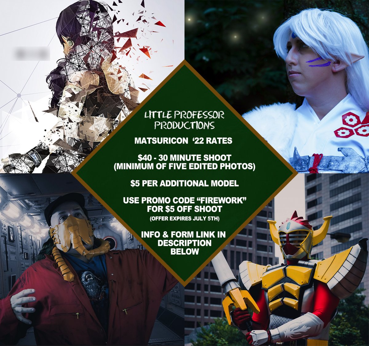 NOW ACCEPTING @Matsuricon '22 BOOKINGS! SPECIAL PROMO: USE CODE "FIREWORK" & RECEIVE $5 OFF YOUR ORDER. (PROMO EXPIRES TOMORROW AT MIDNIGHT EST!) BOOK HERE: forms.gle/bfHZyG8PwFcuF5… #photography #cosplay #cosplayer #anime #matsuricon #matsuricon22 #Columbus