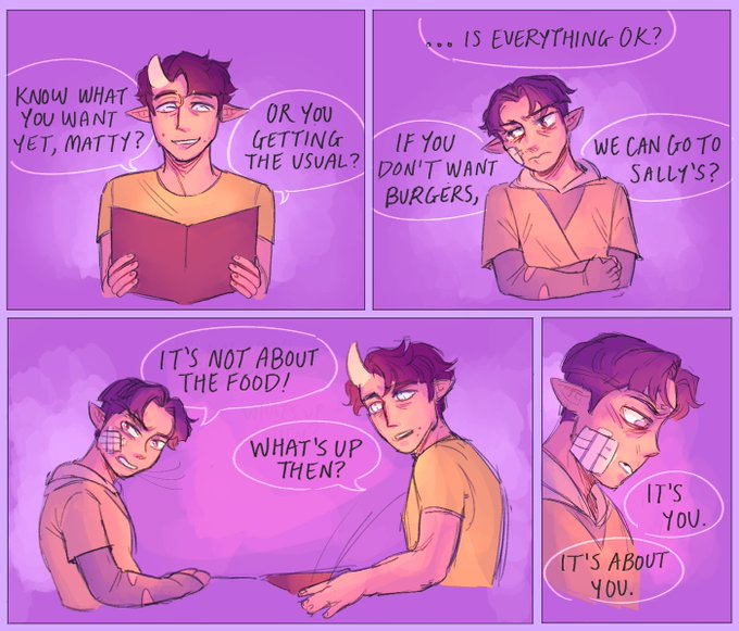 comic about steve and matty's conversation at the diner. (1/?, other parts below) #tohfanart #TheOwlHouse #stevetoh #mattholomuletoh