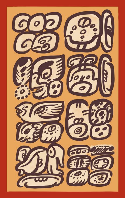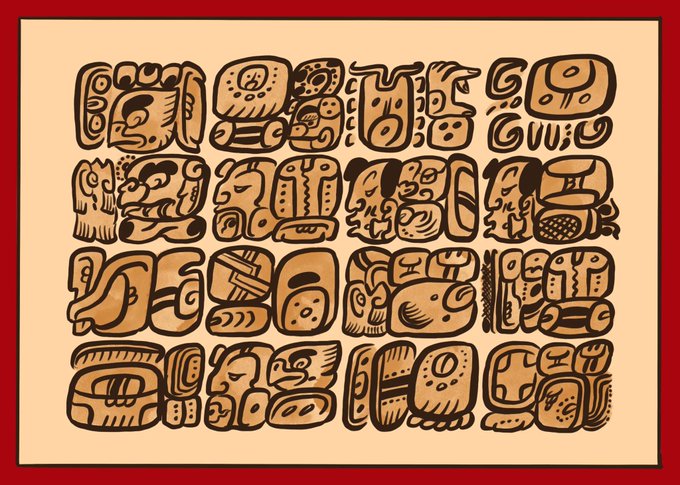 Aquí dice: Jun pik chanal k'uh, jun pik kabal k'uh. "Son ocho mil dioses celestes, ocho mil dioses terrestres." #mayanglyphs #glifosmayas #mayanhieroglyphs #jeroglíficosmayas #escrituramaya #caligrafía #pincel #tinta #caligraphy #ink #brushlettering #inktober #inktober2021