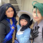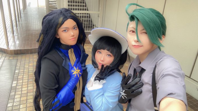 ⚠️コスプレ #アコスタ池袋 今日は🍊SV🍇リーグ女子会(強め)で遊びに来てます〜!よろしく〜! 🔝 @utano_coneco 🗝 @sawawa_touken 🌶 @mym11tenki #cosplay #mayumecos