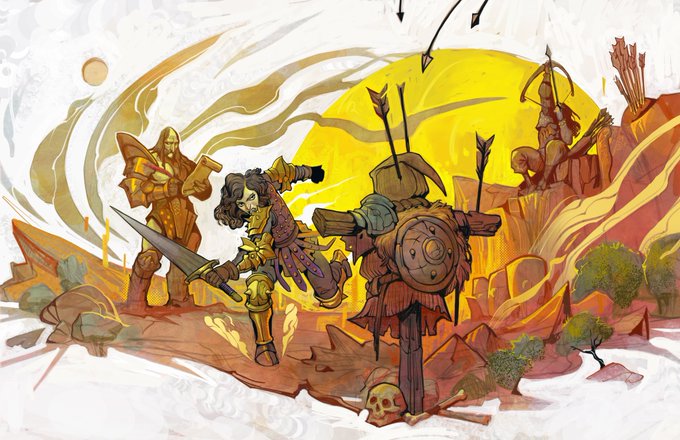 The infamous mercenary group known as The Chain of Acheron during their time in Hell. @helloMCDM #fantasy #mcdm #thechainofacheron #thechainfanart #DnD #mercenaries #hell #illustration #INK #dndart