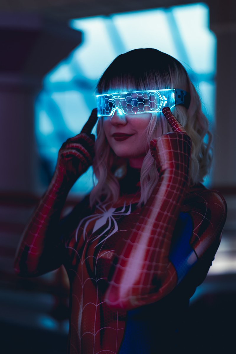 I think Gwen with Mr Starks shades on, looks pretty cool 🤣 #MCMBirmingham #MCMComicCon #cosplay