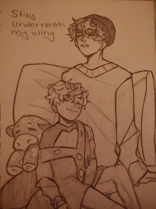 💛Day 36❤of drawing to share my interest. @sircantus, I cannot stress this enough I need more of this story and will not rest till there is more!!😭✨ ("Stay underneath my wing" by sircantus) #mcyt #mcytfanfic #mcytfanart #tommyinnitfanart #wilbursootfanart #tommy #wilbur #sbi
