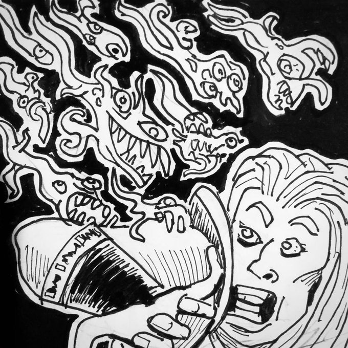 #Inktober2021 Day 25. Splat. “Hay que tener cuidado en los rincones de esta habitación. Las crias de mimetos acechan en las esquinas hambrientos de carne fresca.” _Mas dura será la caída la Lapubra_” #Roldv #MDC