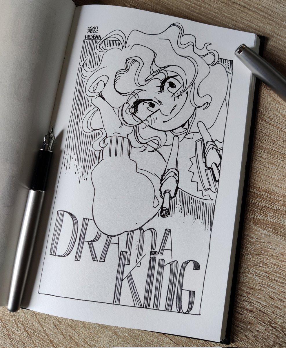 Jour 5 : Drama King (je sais pas si vous avez remarqué mais j'essaie de dessiner que des meufs, enfin quand c'est possible haha) #inktober2022 #inktober #mdtober #mdtober05