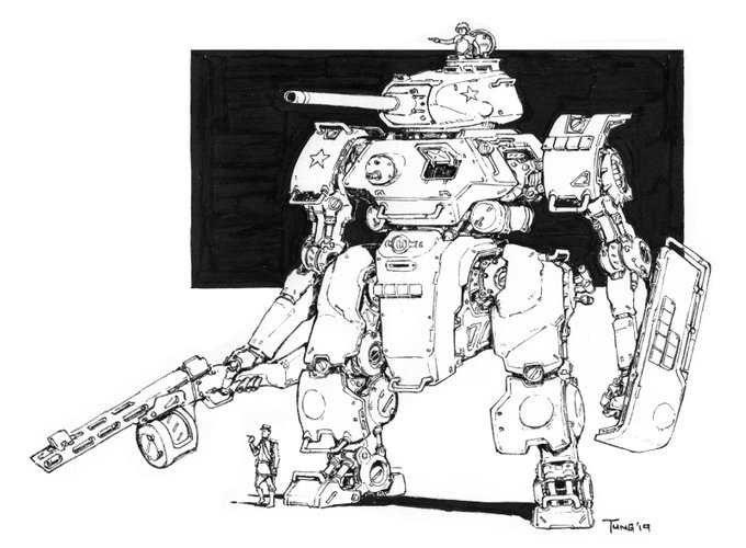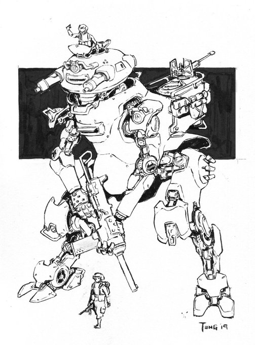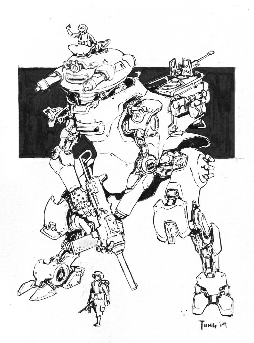 Continuing on with the late #inktober train "The Crossley was a Scout Tankhead that was equipped with a modular backpack system which allowed it to switch out different configurations to suit the mission at hand" For my project #tankheadmecha #robot #giantrobot #mechamonday