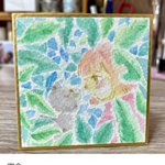 mechifura/ミニ色紙「密会」 @mechifura 届きました🐈 写真で見てるのと原画はホント違って伝わってくるものが違うんです ドキドキするんですよね、 温かいんですよね、 生きてるみたい、いや生きてる…🥹 #mechifura #イラストレーター #イラスト #ミニ色紙 #原画 #イラスト好きな人と繋がりたい