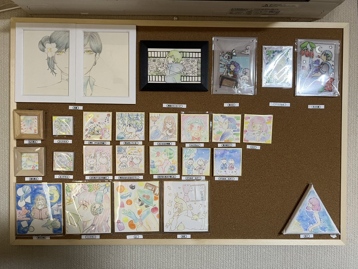 部屋の模様替え中😃 mechifuraさんのイラストのディスプレイが難しいセンス無いので😅取り敢えずコルクボードで〜お金と時間出来たらサイズの合った額縁買うわ😁 昔アルミの枠切り出す仕事の経験あるけど機械が無い😭 #mechifura #イラストレーター