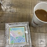 セリエで手ごろなサイズの額縁🖼買った7cm✖︎7cmが入る〜大きめでデザインも悪いけど取り敢えず絵の保護の為につけます!当分は今のコルクボードに付けて後は考える😃 #mechifura #めちふら #イラストレーター
